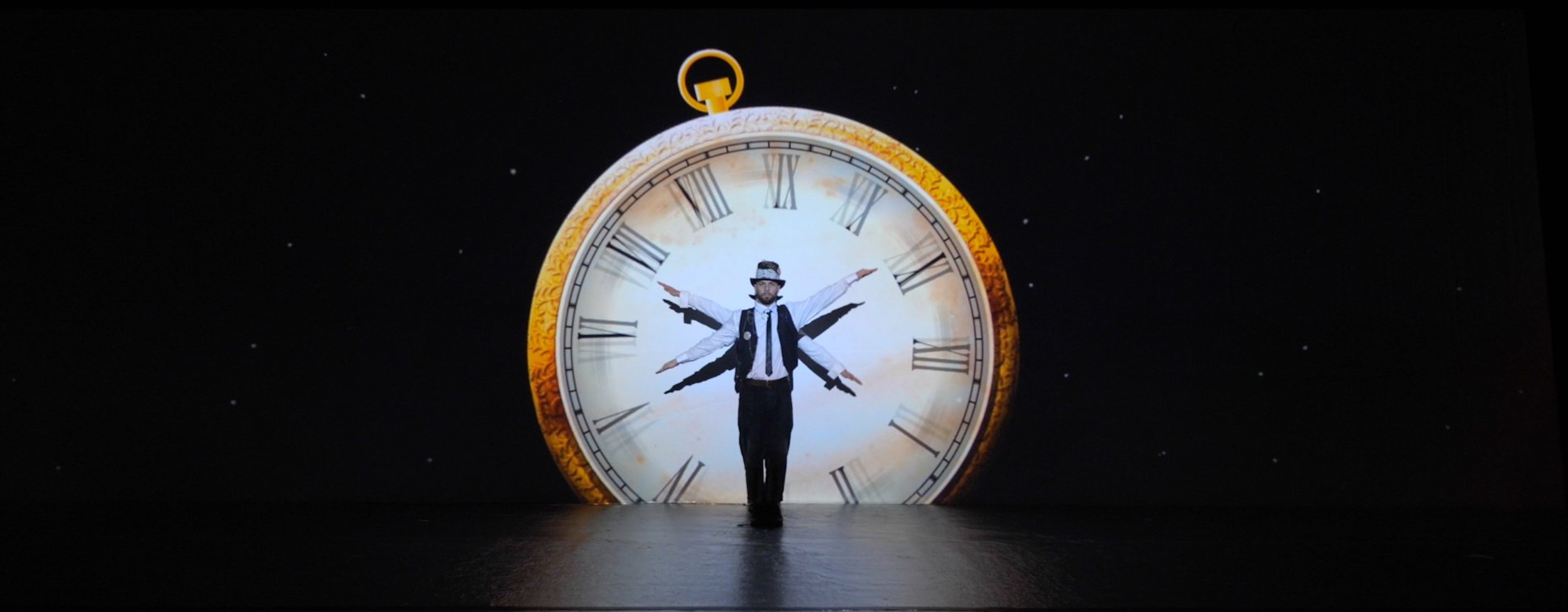 Un mapping illustrant la thématique du temps qui passe où nos artistes,
