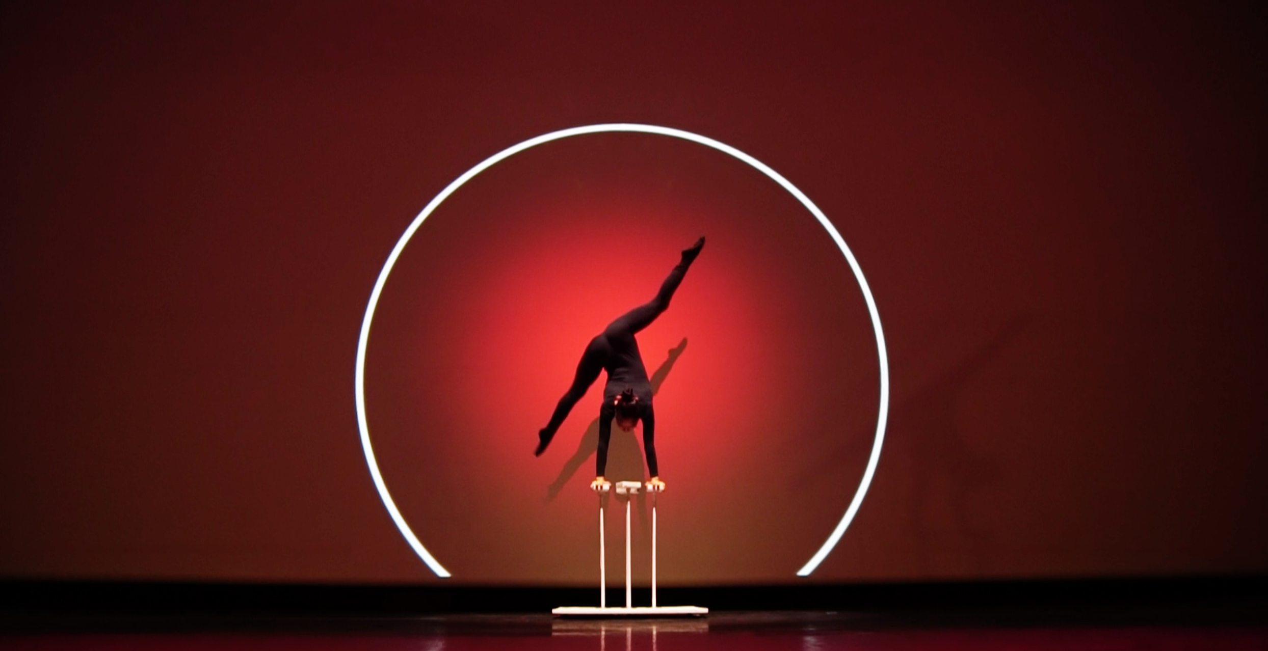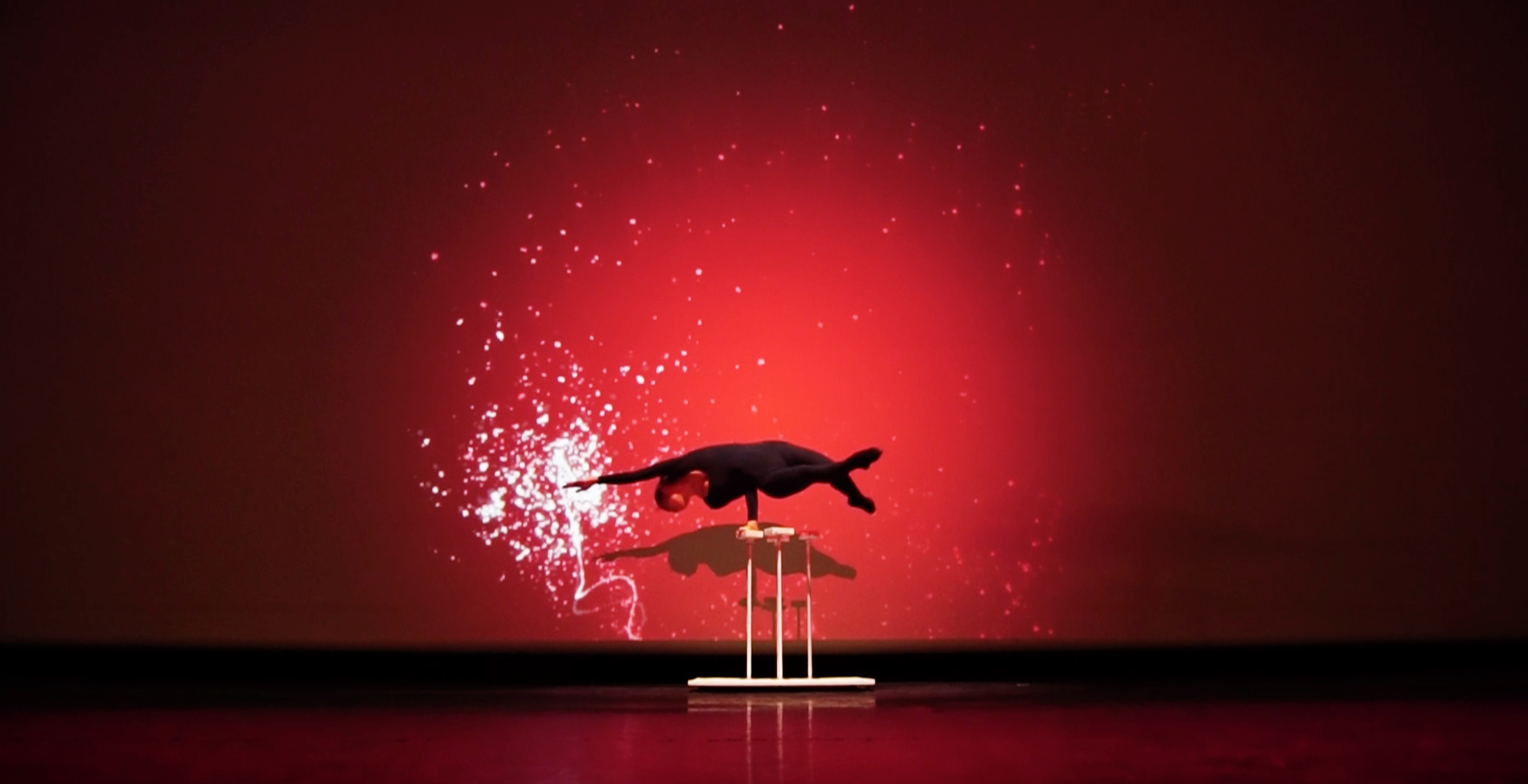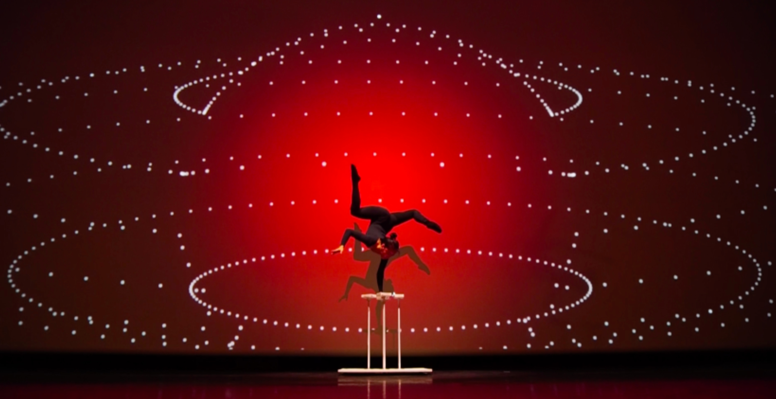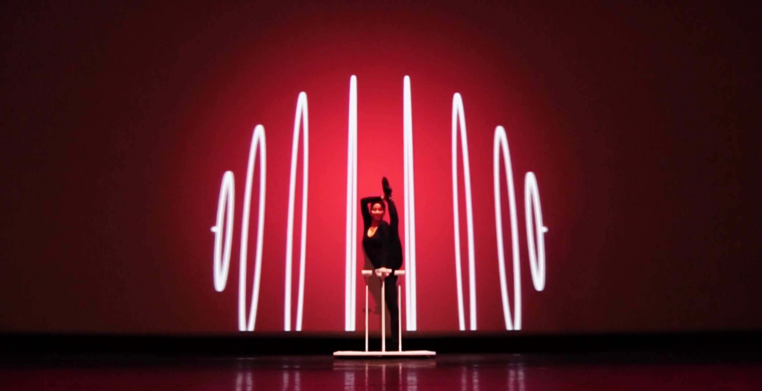 Très graphique, ce visuel mêle la contorsion du corps au mapping vidéo.